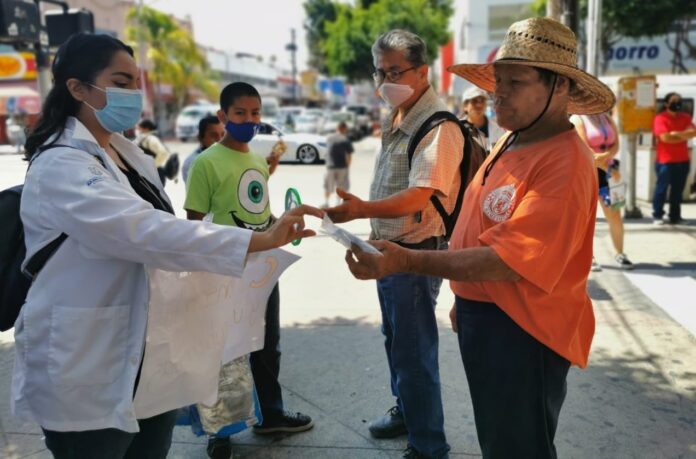 TIJUANA.- A fin de generar conciencia en la población sobre las medidas preventivas establecidas a causa de la contingencia sanitaria por COVID-19, la Secretaría de Salud del Estado, entregó tres mil cubre-bocas, en diferentes puntos de las ciudades de Tijuana, Tecate y Playas de Rosarito, con la participación de cerca de 40 trabajadores de la institución.