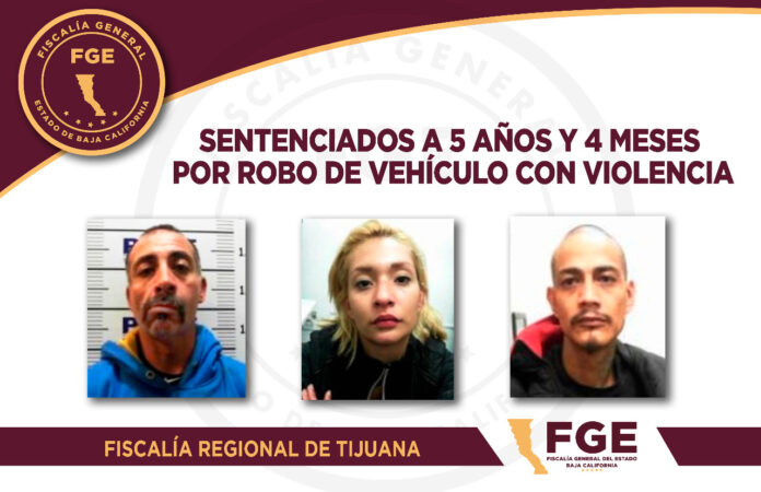 TIJUANA.- La Fiscalía General del Estado obtuvo una sentencia de 5 años y 4 meses de prisión, para tres personas, responsables de robo de vehículo con violencia, cometido en contra de un chofer de la plataforma digital Uber.