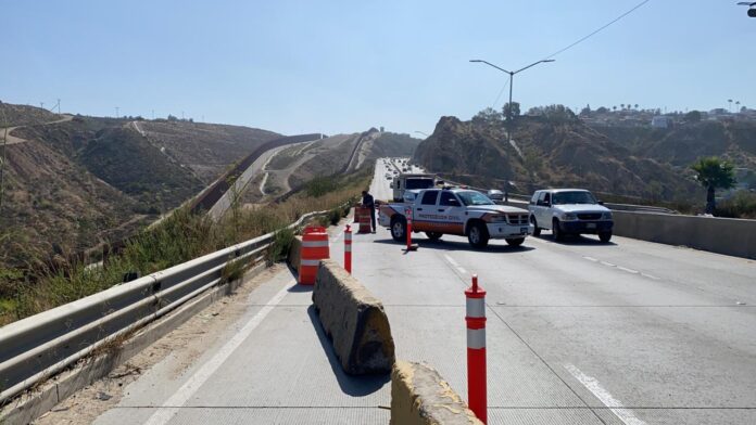 TIJUANA.– Personal de la Dirección de Protección Civil Municipal acudió ha valorar la afectación de la vialidad, ubicada a la altura de la colonia Anexa Los Laureles y colocar barreras de contención en protección a los automovilistas que transitan por la zona.