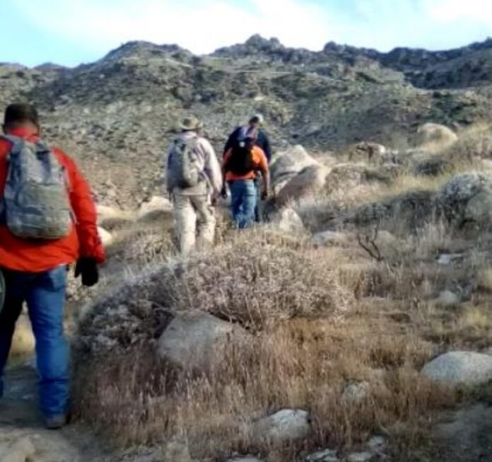 Después de realizar una búsqueda de aproximadamente cinco horas descendiendo por el Km 56, se logró ubicar al migrante varado cerca del área del Cañón del Muerto.