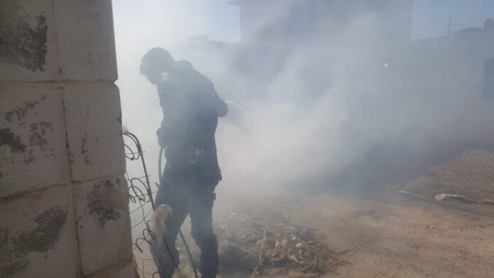 A las 16:45 horas del domingo, agentes de la Guardia Estatal de Seguridad e Investigación (GESI), se percataron del fuego en el patio trasero del predio marcado con número 405 de la calle Estrella, en la colonia Villa las Lomas.