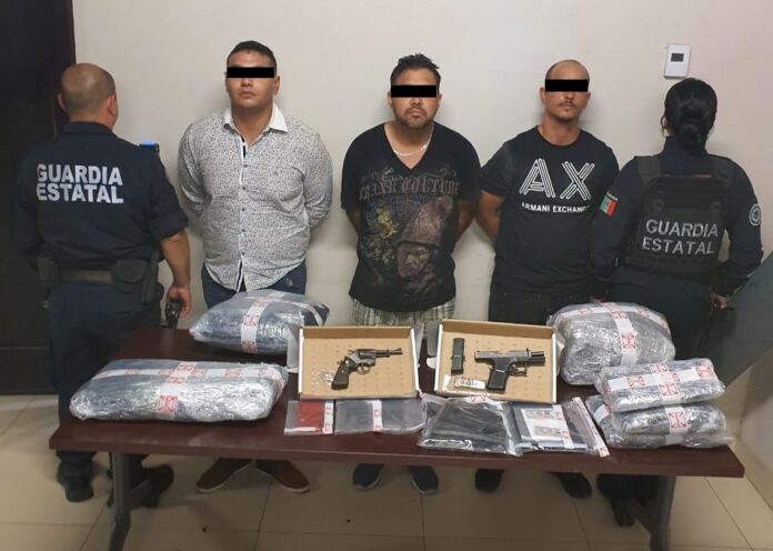 TIJUANA.- La Fiscalía General del Estado (FGE), informó la captura de tres individuos que transportaban armas de fuego, droga, cartuchos de diferentes calibres y equipo de uso de las corporaciones policiales.