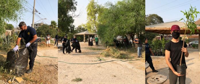 TIJUANA.– Este fin de semana agentes municipales en conjunto con vecinos de la colonia Mariano Matamoros, realizaron una jornada de limpieza y reforestación.