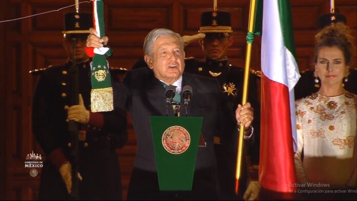 El acto comenzó guardando un minuto de silencio por las víctimas del covid-19, enseguida el mandatario salió al balcón de Palacio Nacional un minuto después de las 11:00 de la noche.