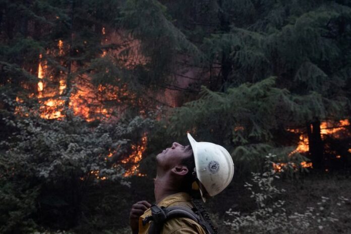 MOLALLA, EEUU, (Reuters) – Con sus recursos al límite, miles de bomberos extenuados batallaron el jueves por aire y tierra para frenar el avance de los mortales incendios forestales que abrasan el oeste de Estados Unidos, donde un senador dijo que partes de Oregón parecen bombardeadas.