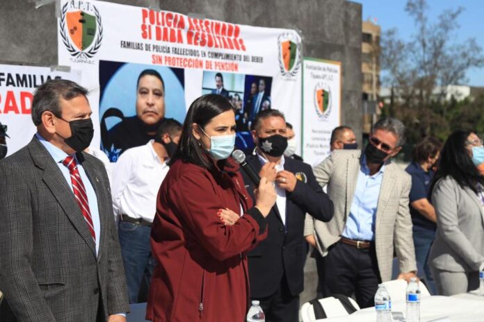 Durante el encuentro con la asociación, la alcaldesa escuchó a los familiares de policías fallecidos en cumplimiento de su deber, quienes buscan que los elementos cuenten con mejores oportunidades, que impulsen su desarrollo y refuercen su compromiso con la sociedad.