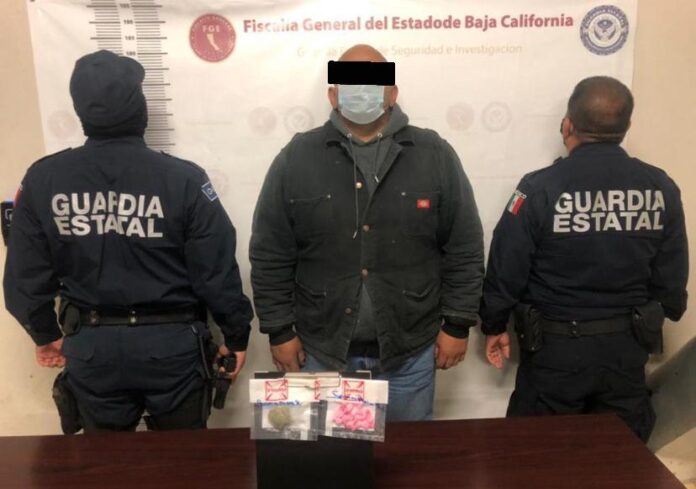 TIJUANA.- Elementos de la Fiscalía General del Estado (FGE), aprehendieron a un sujeto que tenía en su poder metanfetamina.
