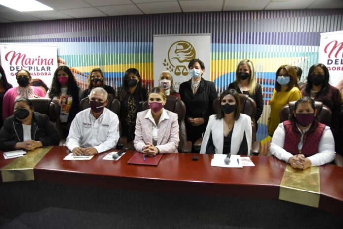 TIJUANA.- Integrantes de la barra de abogadas “María Sandoval de Zarco A.C.”, encabezadas por su presidenta, Mónica Gómez Llanos, escucharon las propuestas de la candidata de la alianza “Juntos haremos historia en BC” Marina del Pilar.