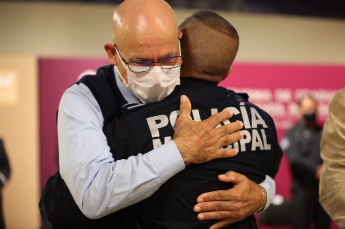 En un emotivo momento, los agentes fueron condecorados por sus familiares, quienes les colocaron la placa distintiva de Policía Municipal, la cual portarán con orgullo y valentía en las jornadas diarias de prevención y seguridad por las calles de la ciudad.