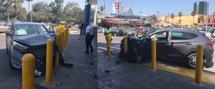 TIJUANA. – Una mujer de la tercera edad sufrió un aparatoso accidente al impactar su automóvil contra un barrote de seguridad en la entrada de la instalación de Sams Club ubicado en Plaza Minarete en Tijuana, los hechos ocurrieron la mañana de este jueves.