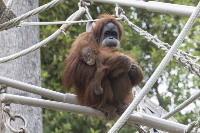 SAN DIEGO, CA (22 de agosto de 2022) – En el Día Internacional del Orangután (19 de agosto), los miembros del equipo de cuidado de la vida silvestre en el Zoológico de San Diego festejaron a dos de los residentes prominentes de primates del Zoológico: Kaja, un bebé orangután de Sumatra en peligro crítico de extinción; y su madre, Indah. Luego de complicaciones graves de salud que dejaron a Indah hospitalizada después de dar a luz, los especialistas en el cuidado de la vida silvestre intervinieron para atender a Kaja y ayudar a cuidar a su cría durante las primeras semanas críticas de su vida. Debido a esta pronta acción, tanto la madre como el bebé están bien y desde entonces se han mantenido juntos.