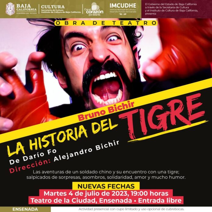 MEXICALI.- Por motivo de agenda del actor mexicano Bruno Bichir, se pospone la obra “La Historia del Tigre”, para los días 4, 5, 6 y 7 de julio en los municipios de Ensenada, Mexicali, Tecate y como nueva sede Tijuana.