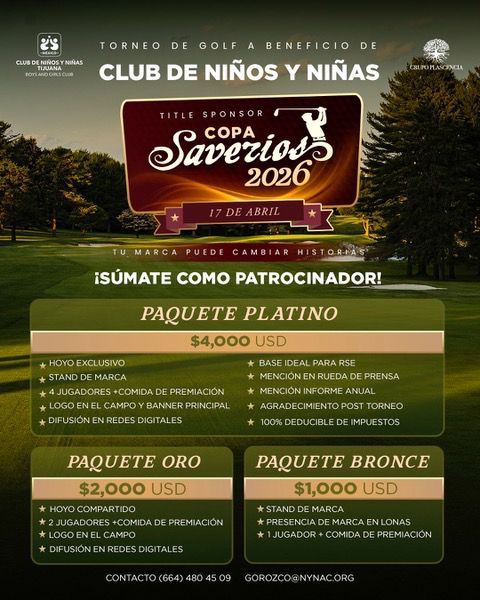 ARTÍCULO LIBRE.– Con el objetivo de fortalecer el tejido social y generar oportunidades para la niñez, fue anunciada la Copa Saverios 2026, un torneo de golf con causa a beneficio del Club de Niños y Niñas Tijuana A.C.