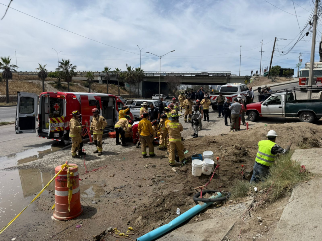 Al llegar al sitio, elementos de la Dirección de Bomberos de Tijuana localizaron a dos trabajadores involucrados en el incidente. Uno de ellos ya se encontraba fuera de la zona afectada con lesiones moderadas.