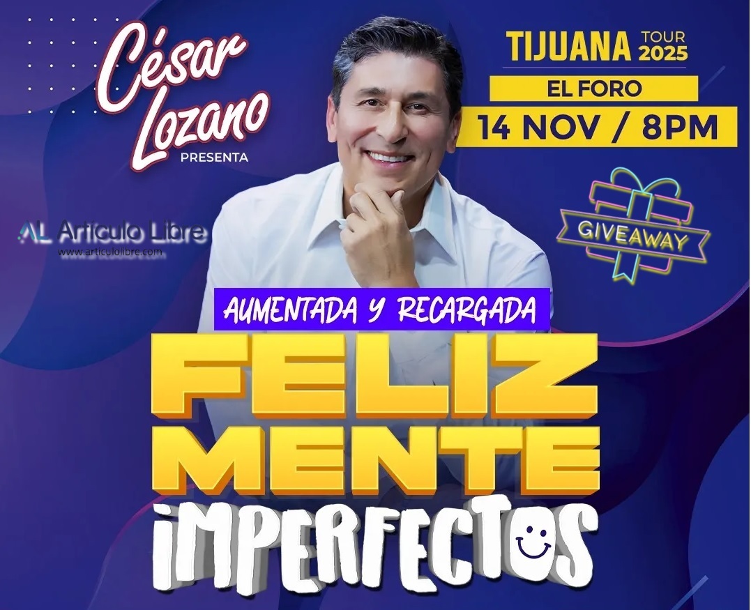 ARTÍCULO LIBRE.- El reconocido conferencista y autor César Lozano regresa a la frontera con su tour “Felizmente Imperfectos”, una experiencia llena de reflexiones, risas y herramientas para una vida más equilibrada. La cita será el 14 de noviembre de 2025 a las 8:00 p.m. en El Foro de Tijuana, donde el doctor Lozano compartirá su inspirador mensaje sobre aceptar nuestras imperfecciones como parte del bienestar emocional.