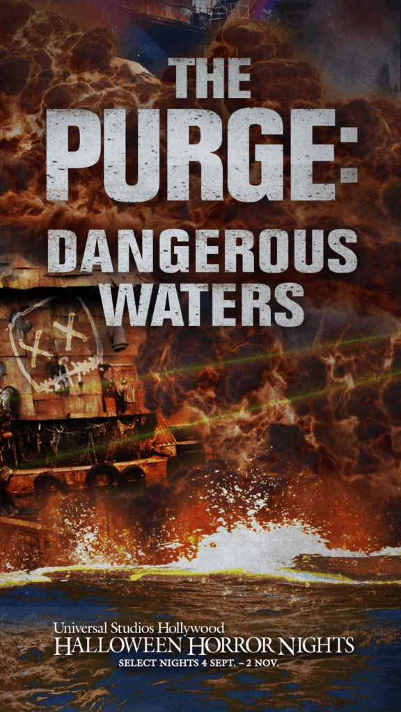 El espectáculo de acrobacias con fuego “The Purge: Dangerous Waters” también vuelve al escenario de WaterWorld, con explosiones, lanchas y caos desatado en medio de la noche.