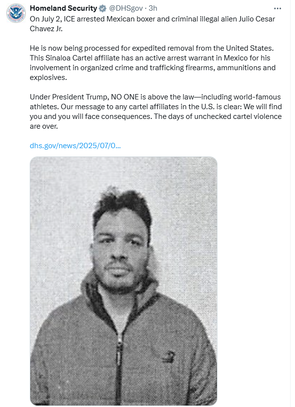 Aquí el comunicado oficial de las Autoridades Estadounidenses: https://www.dhs.gov/news/2025/07/03/dhs-announces-ice-arrest-mexican-boxer-sinaloa-cartel-affiliate-active-criminal