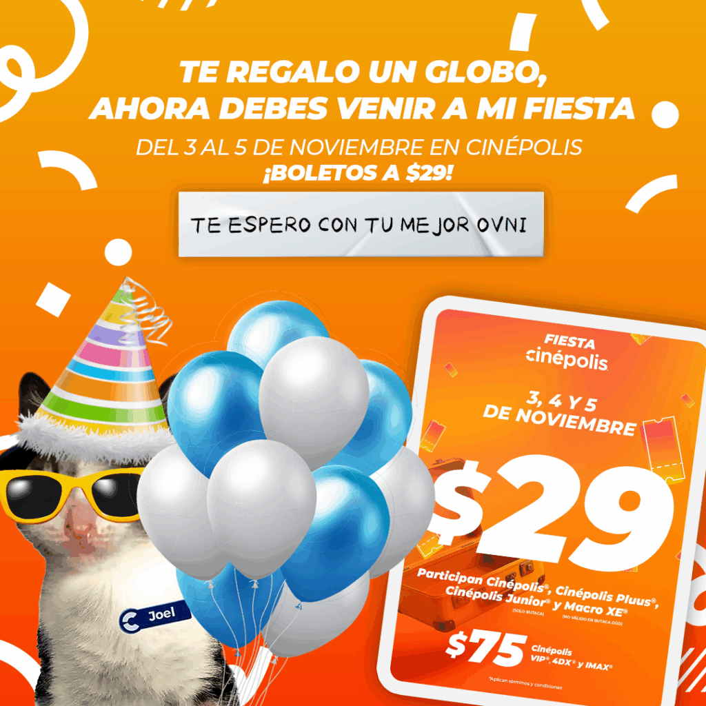 ARTÍCULO LIBRE.- Cinépolis sorprende a los cinéfilos con boletos desde $29 pesos en salas participantes de todo México, disponible del 3 al 5 de noviembre de 2025.