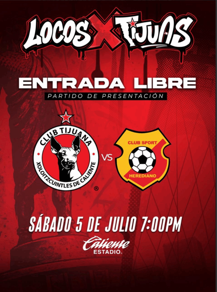 ARTÍCULO LIBRE.- El Club Tijuana tendrá su última prueba antes del arranque del torneo Apertura 2025 este sábado 5 de julio, cuando enfrente al Club Sport Herediano de Costa Rica en el estadio Caliente. El partido está programado para las 7:00 p.m. y será con entrada libre para toda la afición, por lo que el acceso al estadio será completamente gratuito.